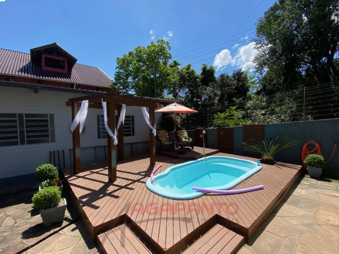 Uma bela casa localizada no bairro Farroupilha em Ivoti - RS. A casa de 125,05 m² conta com 3 quartos, 3 banheiros, cozinha, sala de estar e jantar, uma piscina nos fundos mais uma garagem separada da casa de 62,10 m² com vaga para dois carros, em um terreno de 13 m de largura e 33 m de comprimento totalizando 429 m², além de estar próxima a todas as necessidades.