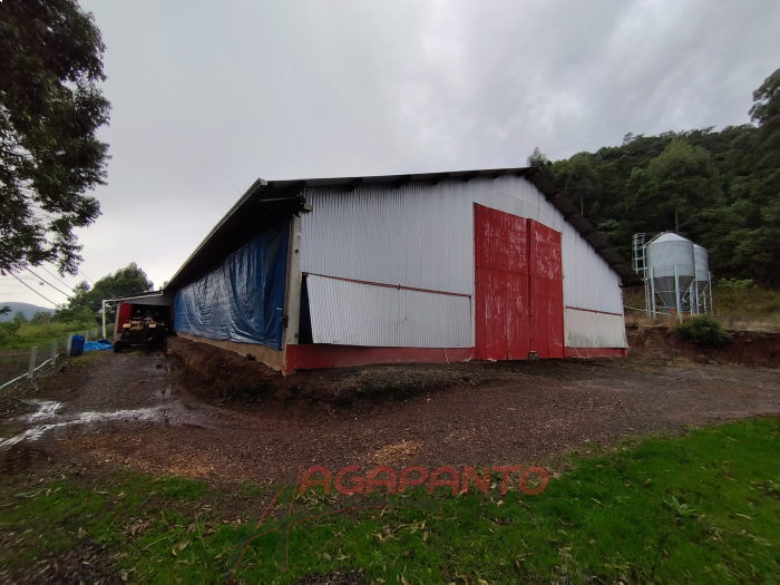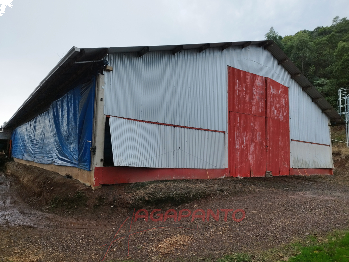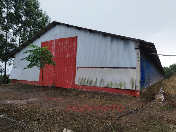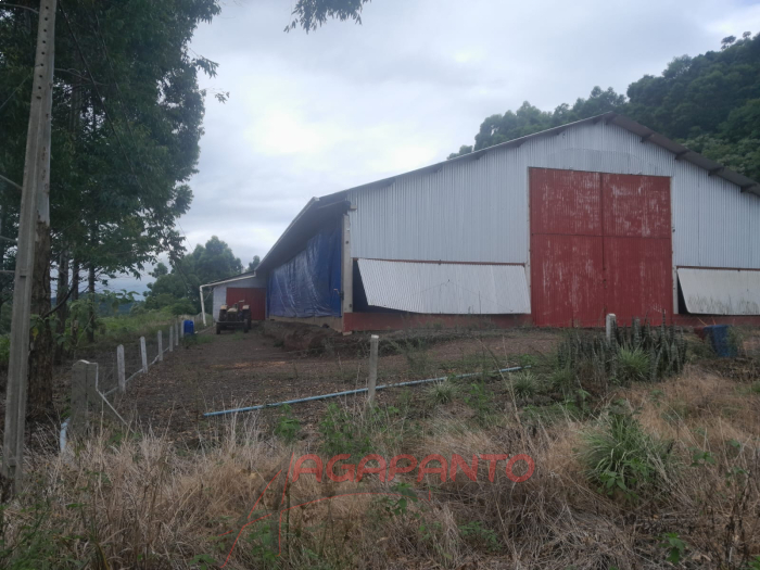 Área de terras com 6 hectares, plana, com um aviário medindo 16 por 150, totalizando 2400 metros quadrados em pleno funcionamento.