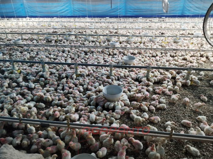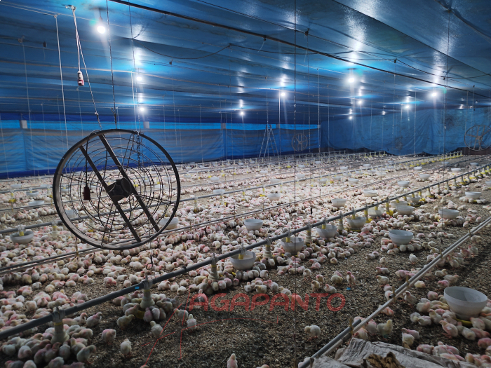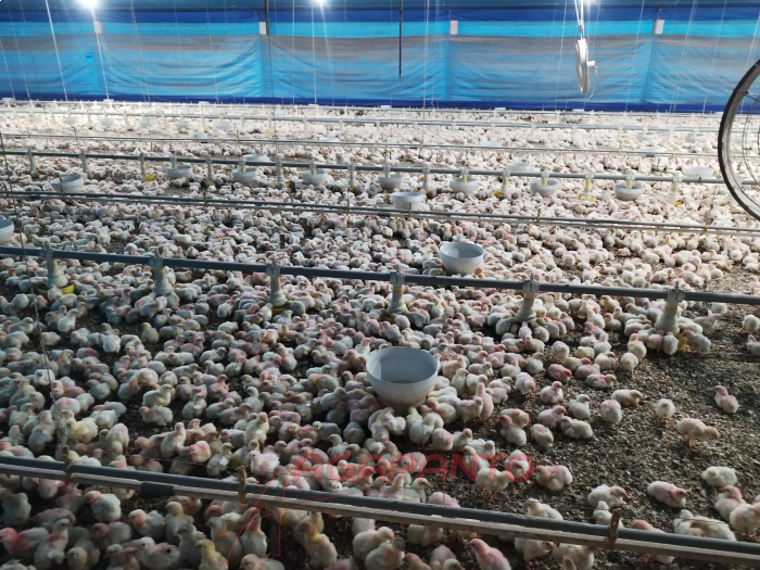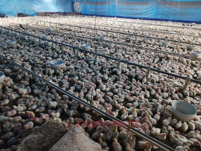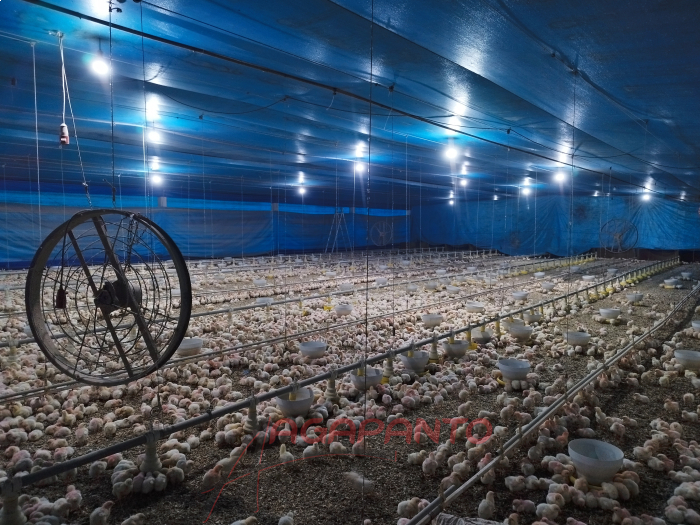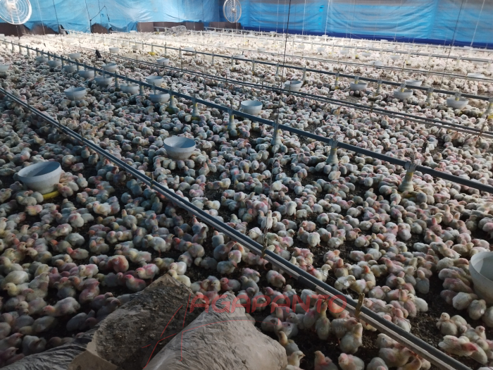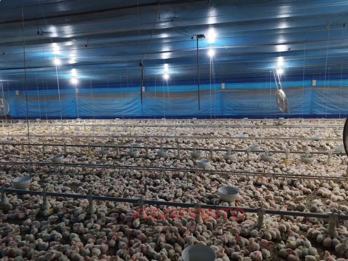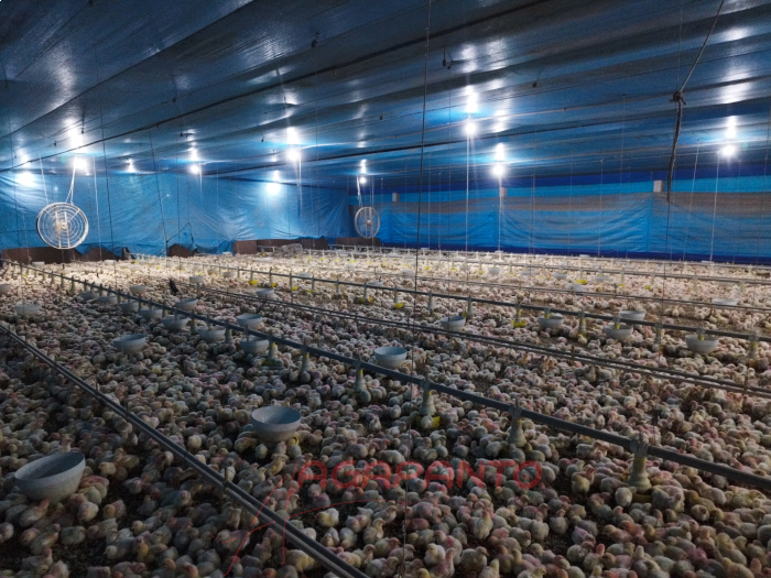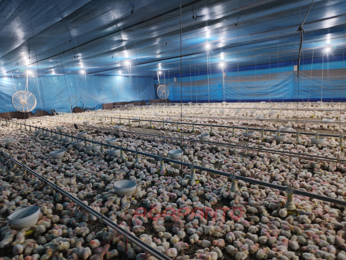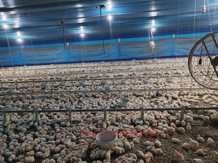 O aviário tem postes de concreto, estrutura de ferro, telhado de zinco, totalmente equipado e automatizado.