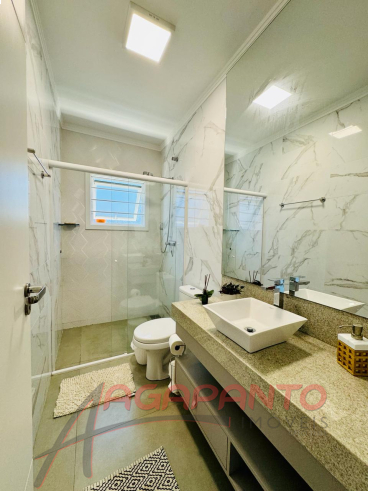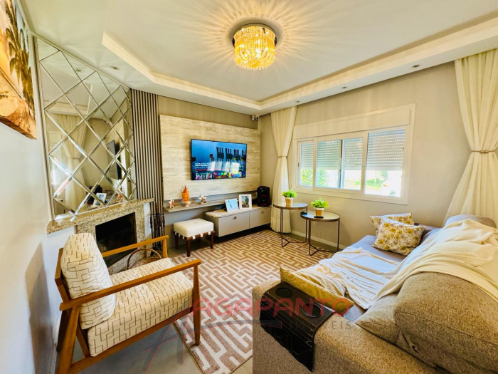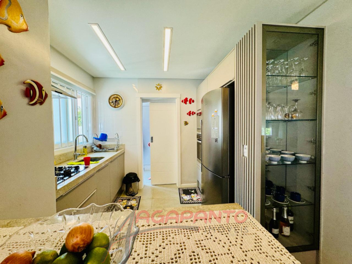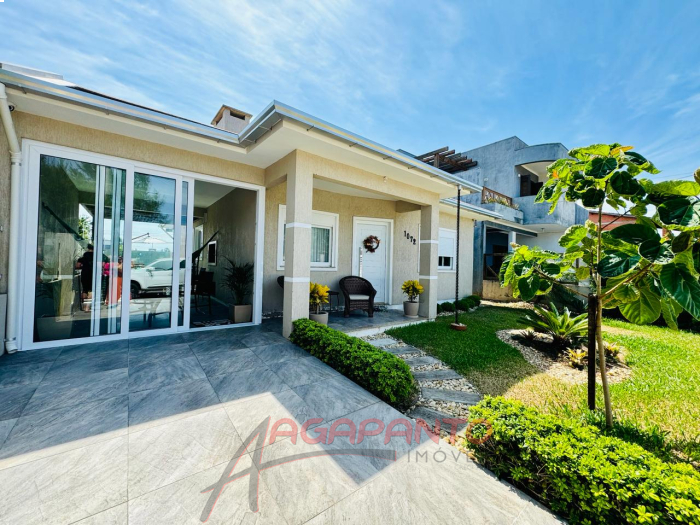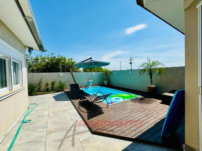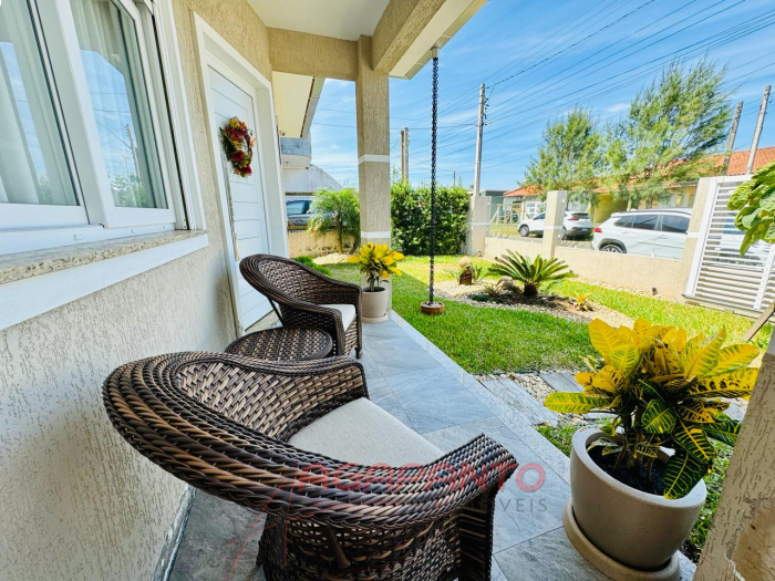 Uma linda casa de 110 m², com 3 quartos, sendo uma suíte, cozinha, sala de estar e jantar, garagem, piscina, quiosque, toda mobiliada, água quente, sistema de câmeras de segurança, toda cercada, há 500 metros do mar.