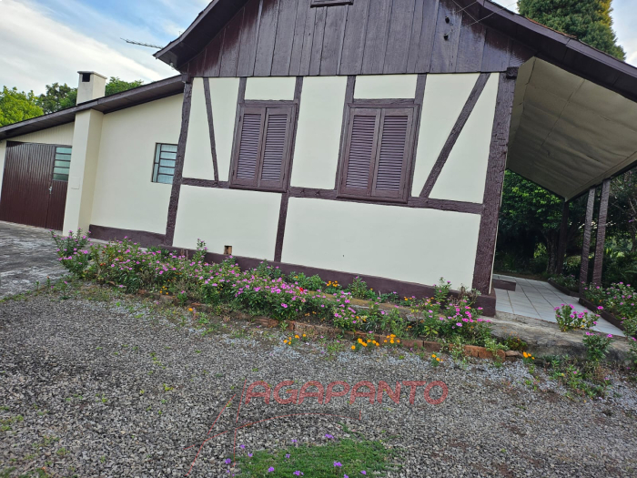 Sítio de 1000 m² plano, com uma casa em estilo enxaimel muito bem conservada de 95 m² com, 2 quartos, banheiro, garagem para um carro, cozinha, sala de estar, lavanderia. De frente para o asfalto localizado no bairro Linha Olinda no município de Linha Nova RS.