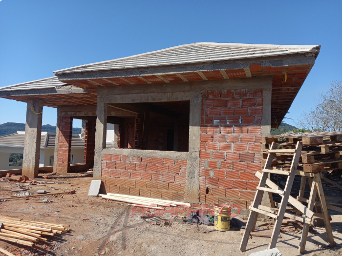 Casa em construção de 146 m², com 3 quartos sendo um uma suíte, banheiro, sala de estar, cozinha e área de serviço. Terreno de 14,5 metros de largura por 45 metros de comprimento totalizando 652 m². Com uma ótima vista panorâmica, muito bem localizada no Centro de Presidente Lucena RS.